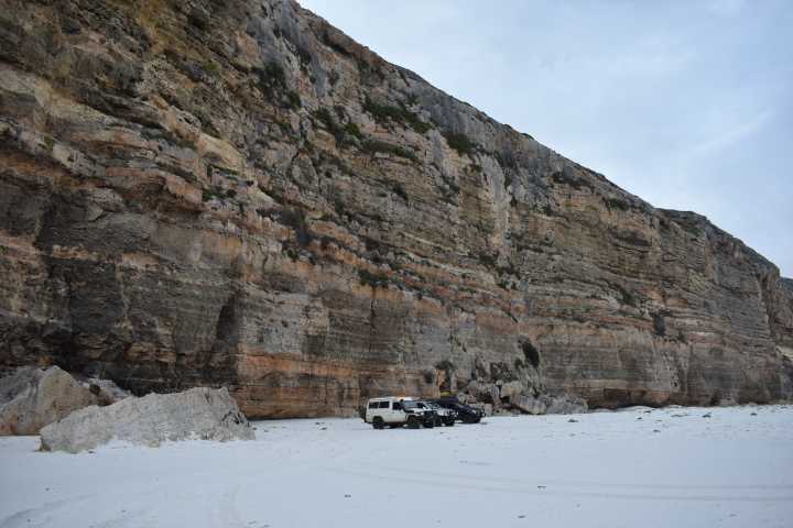 Once on the beach we could see Twilight Cove at the base of the Baxter Cliffs – an invitation for some iconic photos of the vehicles under the edge of the cliff.