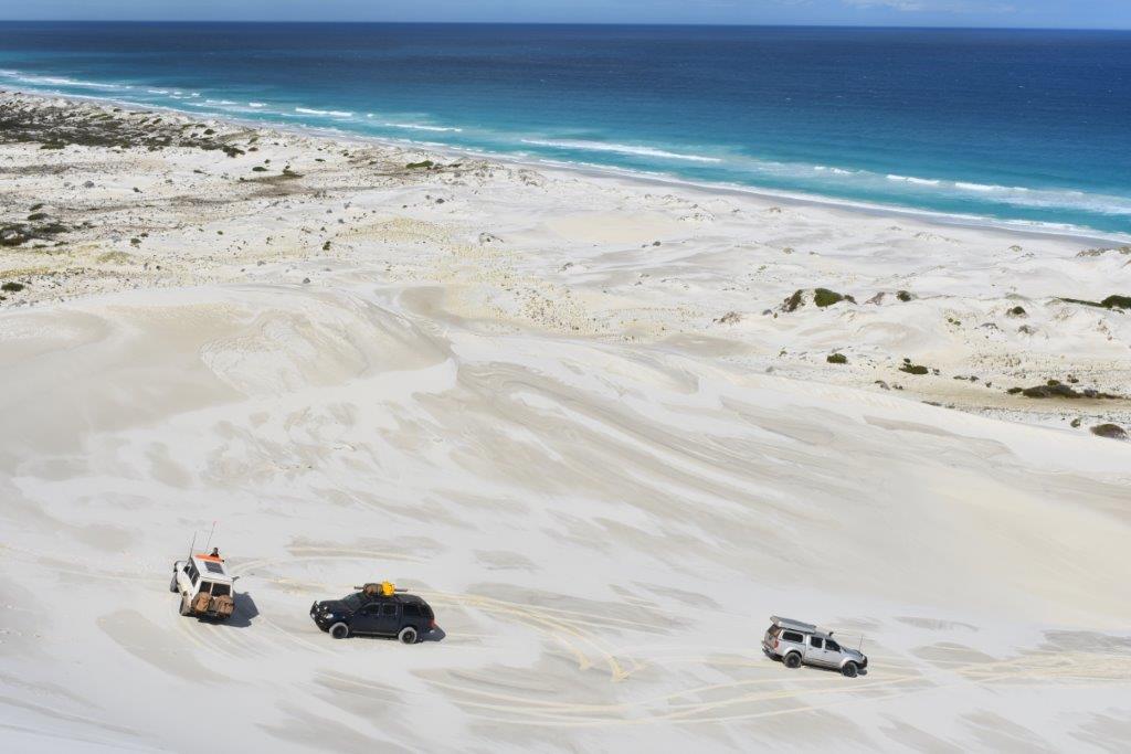 We drove through the Great Western Woodlands, past Norseman and headed east on the Old Coach Road to Cocklebiddy on the Eyre Highway. Then south to Twilight Cove and across to Toolina Cove, the only break in the Baxter Cliffs – the world’s most spectacular!  Nuytsland Nature Reserve is as remote as it gets in WA. We followed the historic East-West Telegraph Line to the Wylie Scarp and dropped down to the amazing Bilbunya Dunes. The wide, white beach fronting the wild Southern Ocean leads to a series of claypans that provided some great four-wheel driving through to Israelite Bay.