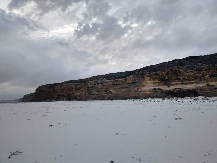 Once on the beach, we headed to the scarp on the eastern side, the western side of the Baxter Cliffs. W took a few photos under the cliff edge to mark that we have travelled from one side to the other.