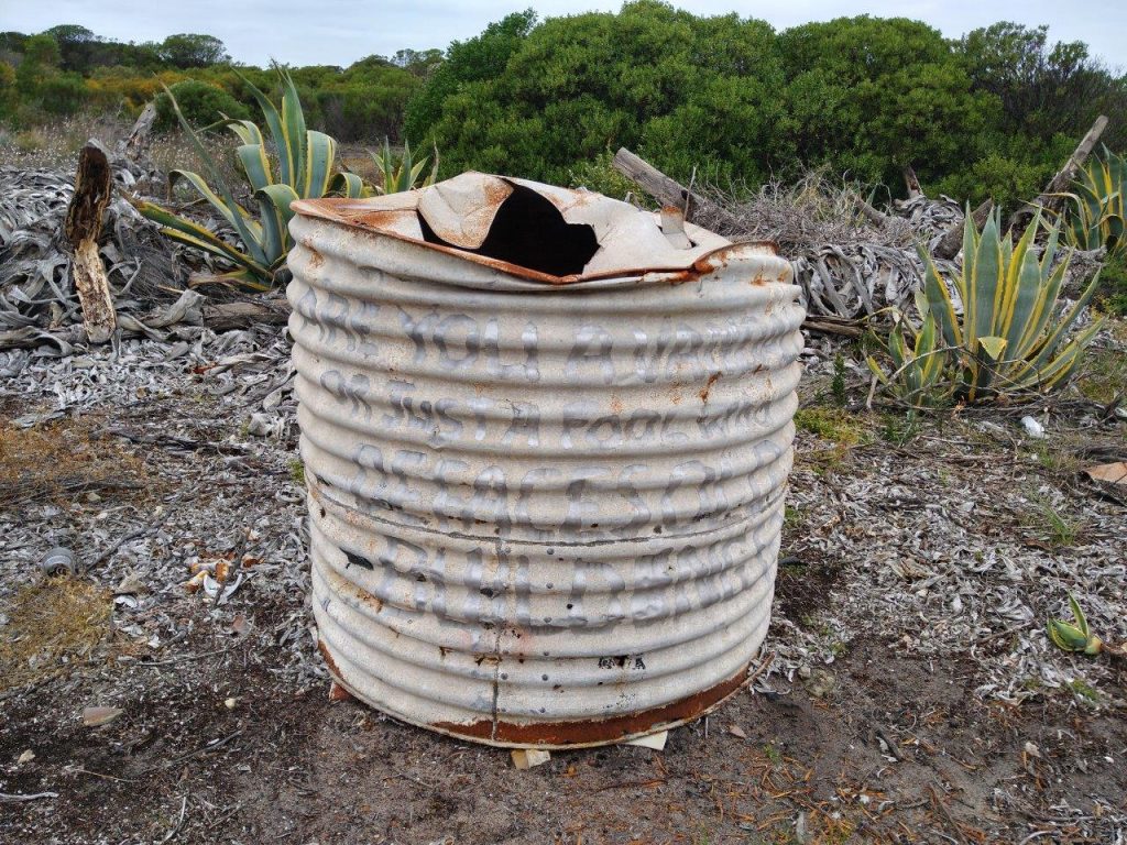 It was disappointing to see the amount of graffiti and purposeful destruction throughout the Telegraph Station. Someone has spray-painted a message to these people on an old, corrugated water storage bin. “Are you a vandal or just a fool who defaces old buildings“.