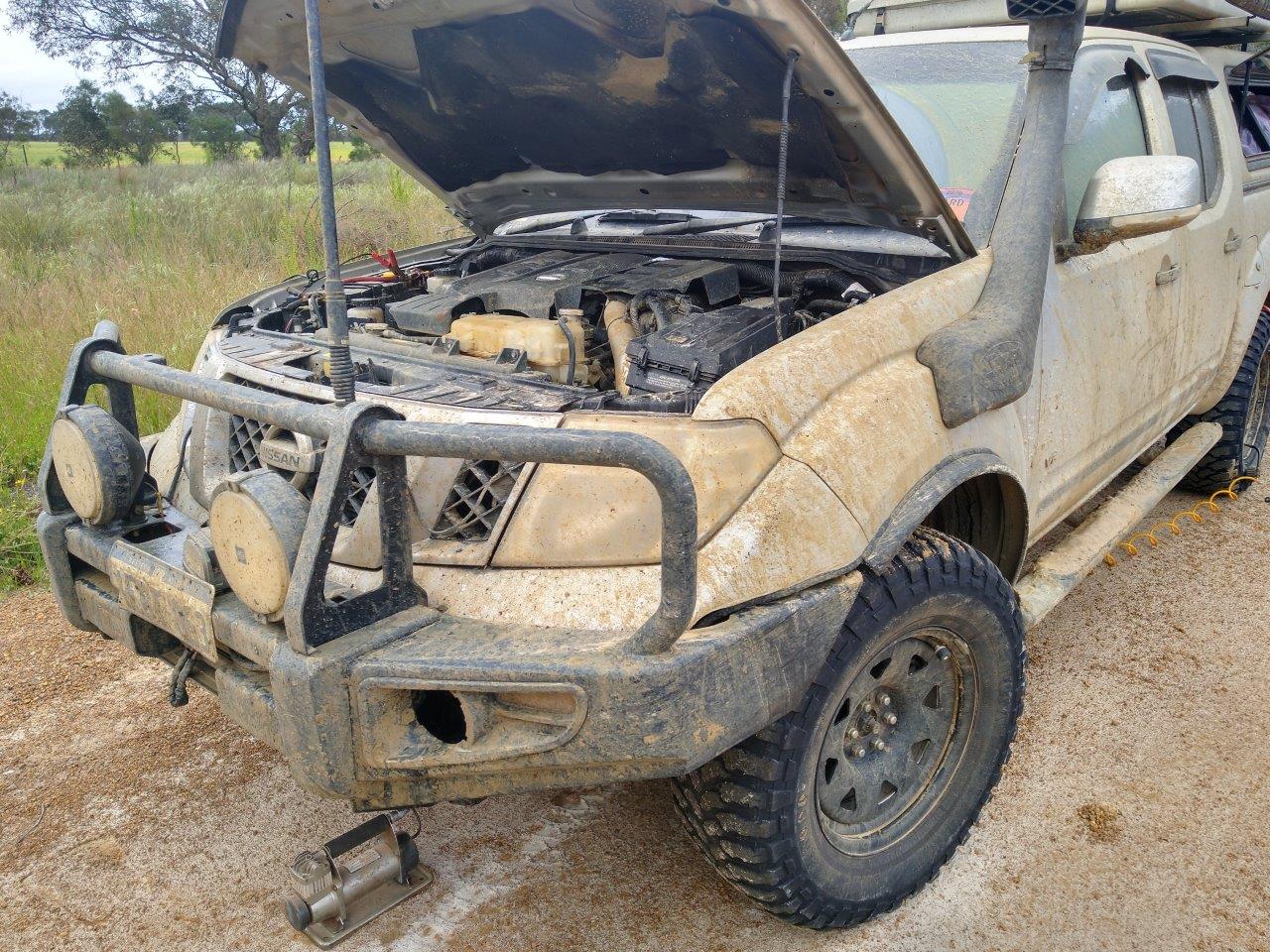 While out having fun I heard Brad on the radio calling for help as he managed to get bogged. Albeit he was in 2WD at the time. Matt and I arrived and determined we could do a snatch recovery. While we set up, Craig got the cameras out to record the recovery. I purposely went slow on the first pull to show that aggressive recoveries are not always required but it didn’t work and he was still stuck. The second attempt was a small nudge and the shunt was big enough to pop it straight out.